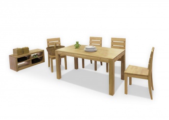 Masivni jedilni set je narejen iz bukovega lesa. Na sliki je jedilni set lakiran. Vse jedilnice so narejene izključno po naročilu. Za ogled izdelkov nas lahko po dogovoru obiščete v naši proizvodni enoti v Polhovem Gradcu.