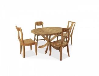 Masivni jedilni set je narejen iz orehovega lesa. Na sliki je jedilni set lakiran. dva stola sta iz oreha, dva pa iz hrasta. Jedilni set je unikaten - vse je namreč narejeno izključno ročno. Vse jedilnice so narejene izključno po naročilu. Za ogled izdelkov nas lahko po dogovoru obiščete v naši proizvodni enoti v Polhovem Gradcu.