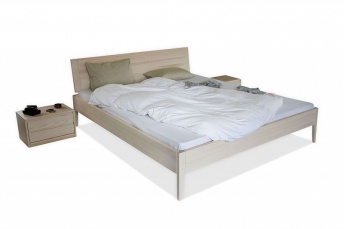 Postelja na sliki je izdelana iz masivnega jesenovega lesa, lužena na belo ter lakirana. Naslon postelje je nagnjen. Vse naše postelje so izdelane izključno po naročilu, tako da je možno naročilo tudi iz druge drevesne vrste. Izdelke, ki čakajo na odpremo ter različne vzorčke drevesnih vrst, lahko vidite v naši proizvodni v Polhovem Gradcu. Posteljo v smreki, bukvi, hrastu in jesenu lahko lužimo tudi na vaš želeni odtenek. Za ta tip postelje priporočamo nakup vzmetnice debeline 15-25 cm. Poljubno je lahko tudi višja ali nižja ter tudi brez naslona.