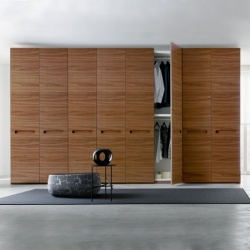 Omara na sliki je narejena iz hrastovega furnirja . Mera, vrsta premaza, les, vrsta vodil ter razporeditev poličk in predalov je stvar dogovora.