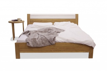Postelja na sliki je izdelana iz masivnega hrastovega lesa ter oljena. Naslon postelje je rahlo zakrivljen. Vse naše postelje so izdelane izključno po naročilu. Za ta tip postelje priporočamo nakup vzmetnice debeline 15-25 cm. Poljubno je lahko tudi višja ali nižja ter tudi brez naslona.