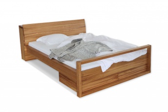 Postelja ima 4 predale (dva spredaj in dva za naslonom, ki je rahlo zakrivljen). Postelja na sliki je izdelana iz masivnega hrastovega lesa ter oljena. Vse naše postelje so izdelane izključno po naročilu. Izdelke, ki čakajo na odpremo ter različne vzorčke drevesnih vrst, lahko vidite v naši proizvodni v Polhovem Gradcu. Za ta tip postelje priporočamo nakup vzmetnice debeline 15-25 cm. Poljubno je lahko tudi višja ali nižja ter tudi brez naslona.
