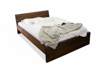 Postelja na sliki je izdelana iz masivnega orehovega lesa ter oljena. Naslon postelje je nagnjen. Vse naše postelje so izdelane izključno po naročilu, tako da je možno naročilo tudi v drugi drevesni vrsti ali barvi. Izdelke, ki čakajo na odpremo ter različne vzorčke drevesnih vrst, lahko vidite v naši proizvodni v Polhovem Gradcu. Za ta tip postelje priporočamo nakup vzmetnice debeline 15-25 cm. Poljubno je postelja lahko tudi višja ali nižja ter tudi brez naslona.