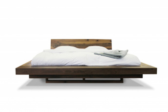 Postelja na sliki je izdelana iz masivnega orehovega lesa ter lakirana. Naslon postelje je nagnjen. Vse naše postelje so izdelane izključno po naročilu, tako da je možno naročilo tudi iz druge drevesne vrste. Izdelke, ki čakajo na odpremo ter različne vzorčke drevesnih vrst, lahko vidite v naši proizvodni v Polhovem Gradcu.