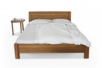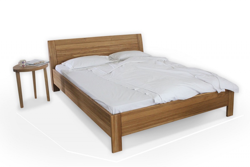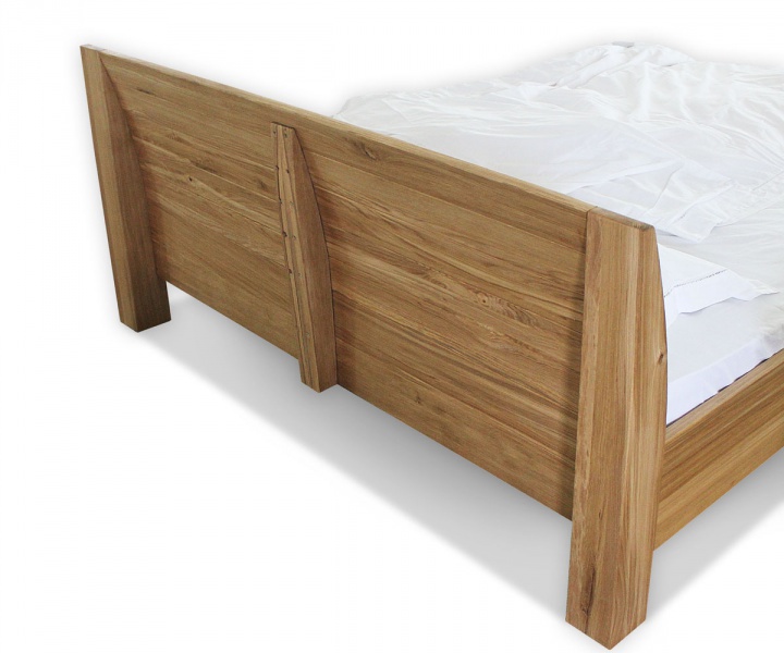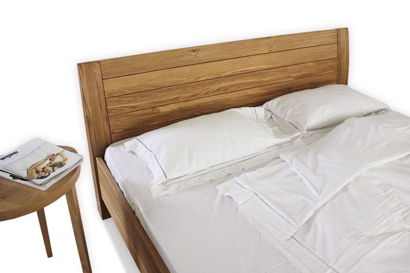 Postelja na sliki je izdelana iz masivnega hrastovega lesa ter oljena. Naslon postelje je rahlo zakrivljen. Vse naše postelje so izdelane izključno po naročilu. Za ta tip postelje priporočamo nakup vzmetnice debeline 15-25 cm. Poljubno je lahko tudi višja ali nižja ter tudi brez naslona.