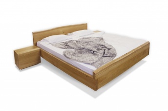 Postelja na sliki je izdelana iz masivnega hrastovega lesa ter je oljena. Naslon postelje je navpičen. Vse naše postelje so izdelane izključno po naročilu, tako da je možno naročilo tudi iz druge drevesne vrste. Za ta tip postelje priporočamo nakup vzmetnice debeline 15-25 cm. Poljubno je lahko tudi višja ali nižja ter tudi brez naslona.