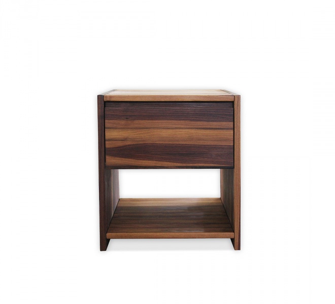 Nočna omarica je narejena iz masivnega orehovega lesa ter oljena. Vse omarice so narejene po naročilu.