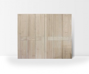 Omara na sliki je narejena iz masivnega jesenovega lesa, beljena ter lakirana . Mera, vrsta premaza, les, vrsta vodil ter razporeditev poličk in predalov je stvar dogovora.