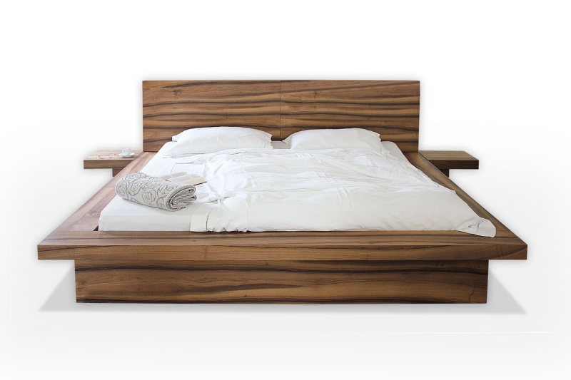Postelja je izdelana iz orehovega furnirja ter oljena z naravnim pohištvenim oljem. Naslon postelje je navpičen. Vse naše postelje so izdelane izključno po naročilu.