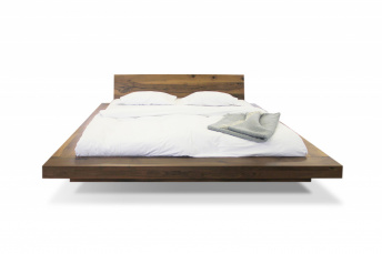 Postelja na sliki je izdelana iz masivnega orehovega lesa. Naslon postelje je nagnjen. Vse naše postelje so izdelane izključno po naročilu, tako da je možno naročilo tudi iz druge drevesne vrste. Izdelke, ki čakajo na odpremo ter različne vzorčke drevesnih vrst, lahko vidite v naši proizvodni v Polhovem Gradcu. Za ta tip postelje priporočamo nakup vzmetnice debeline 15-30 cm. Poljubno je lahko postelja tudi višja ali nižja ter tudi brez naslona.